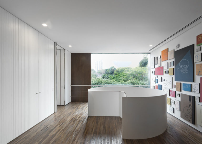 Una scultorea scala a chiocciola collega i due piani all’interno di Yucatan House progettata dall’architetto brasiliano Isay Weinfeld, nel quartiere Jardins di San Paulo. La casa è una galleria privata e una guesthouse per due collezionisti d’arte. La coppia aveva incaricato l’architetto di creare una casa che potesse essere usata per presentare mostre, organizzare feste e anche ospitare, in occasione di eventi come la Biennale d’Arte di San Paolo, artisti ed appassionati.