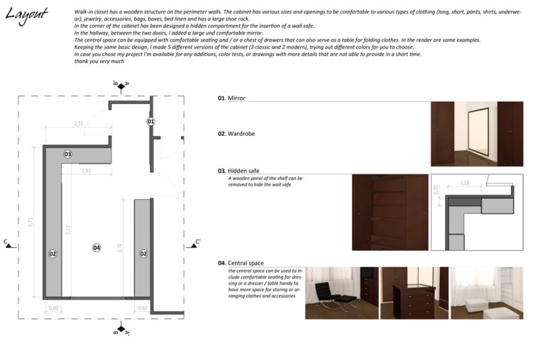 In generale, tutti i progetti hanno presentato delle idee sull’organizzazione dello spazio e dei suggerimenti per arredare la cabina armadio.