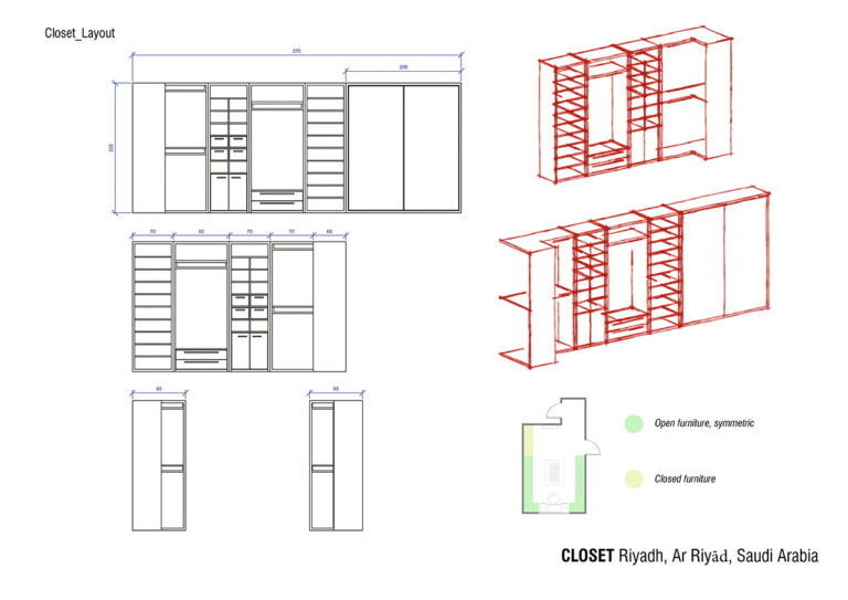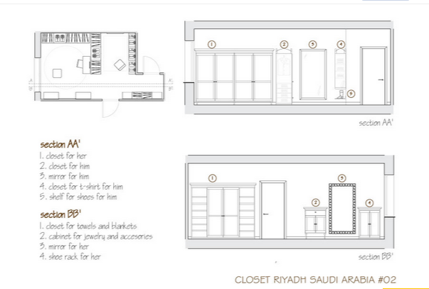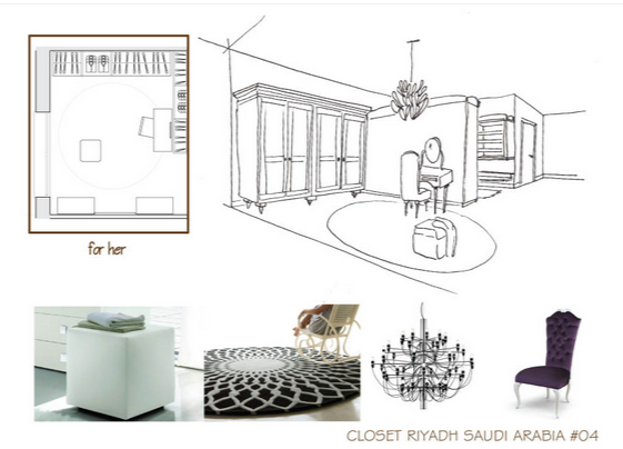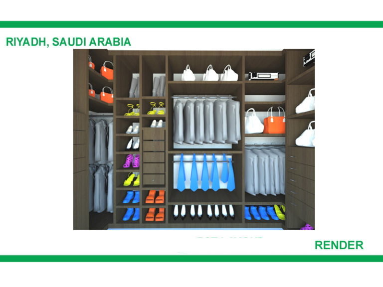 La creazione di una cabina armadio deve fare i conti naturalmente con le dimensioni della casa e lo spazio a disposizione. Un problema che non sembra riguardare minimamente i coniugi Riyad. A quanto si apprende dalla descrizione del contest, i Riyad possiedono una villa e vorrebbero una spaziosa cabina armadio all’interno della loro camera padronale.