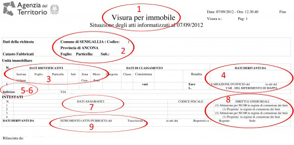 Vediamo come si legge una visura per immobile (vedi immagine sopra)