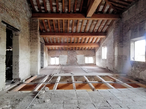 - solaio in legno, formato da travi principali, travetti secondari e tavolato in legno