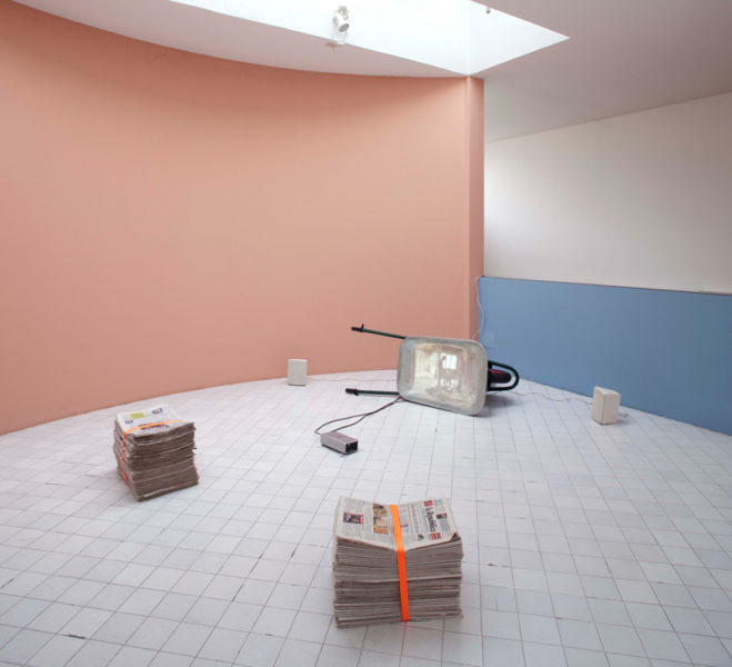 Cristian Chironi, My house is a Le Corbusier (Esprit Nouveau Pavillon), 2015, veduta della mostra, foto M. Monti, © C. Chironi e FLC, courtesy MAMbo – Museo d’Arte Moderna di Bologna